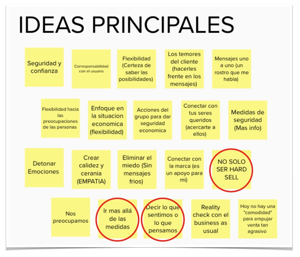 En una segunda sesión de trabajo, detectamos las ideas principales detrás de la comunicación de la competencia y otras industrias.